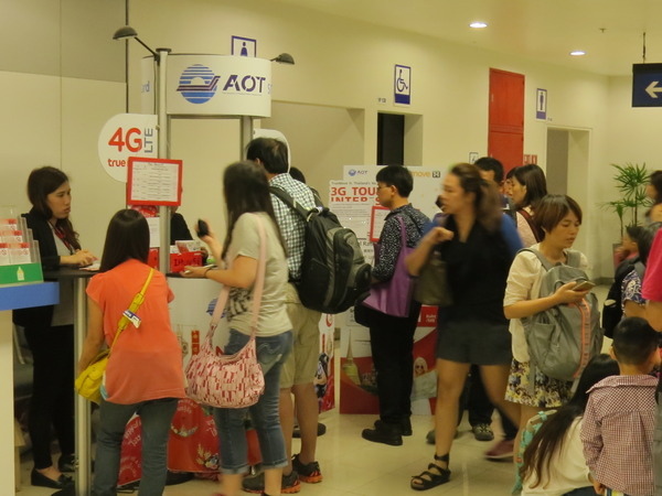 清邁機場不大,通關速度挺快,行李也很快拿到。聽說在機場可以免費索取TRUE MOVE3G網卡,所以一出關就看到服務台前已經排了許多人,結果被告知要付費,我們不想排隊,直接到7-11買吃到飽也很方便。