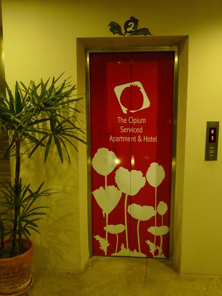 才剛八點,我們看到旅店入口:The Opium Serviced Apartment & Hote,標誌醒目,接著彎進安靜蓊鬱的小巷,感覺很好,接下來幾天我們將會經常在這裡出沒。