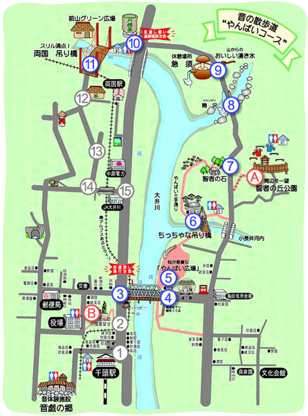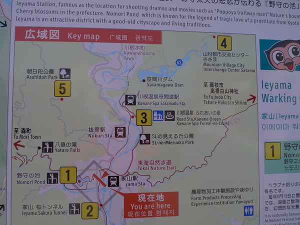 車站前有散步路線,走五分鐘到「B」就有展望台。(大圖和路線說明連結)