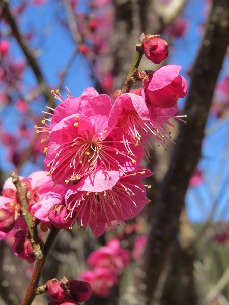 六點左右抵達靜岡市郊區的賞梅名所~~「洞慶院梅園」,黃色蠟梅已謝(花訊連結),白梅紅梅都還含苞待放,花況並不精采。