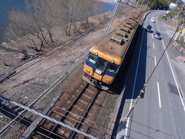 一列「千頭」開往「金谷」的南下普通列車正好穿過我的腳下,搖晃感倍增。