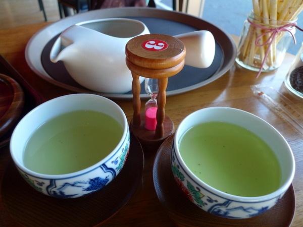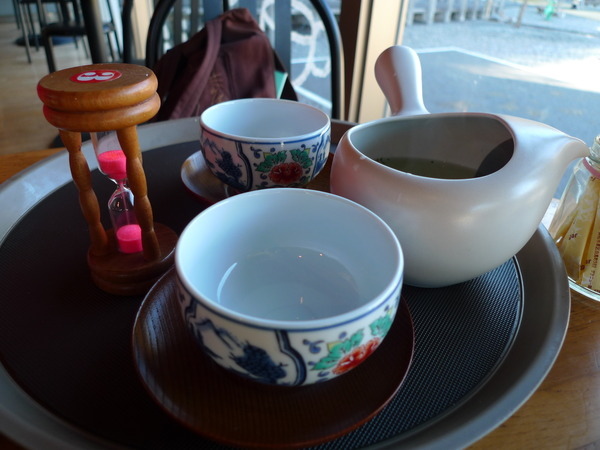 附沙漏,服務生特別教我們:漏完就表示茶可以倒出來了,雋永的日本茶香。