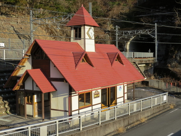 從前上方正好有運貨的索道經過,所以建了這座長度只有7公尺左右的小隧道來維護行車安全,此時如果有SL車經過就更好了。
