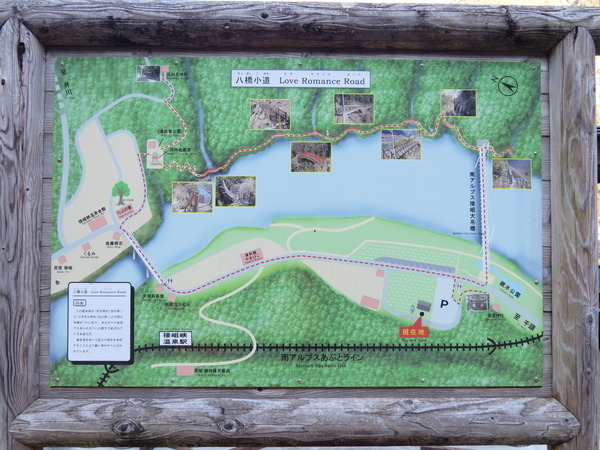 茶園旁邊不起眼的地圖立牌,我們卻如獲至寶,如果沒看到它,我們鐵定找不到下一個景點~~Rainbow Bridge展望台。(平田隧道→過下一個隧道→立即右轉隧道邊下坡小路,沒有指標,無法會車,很容易錯過。)