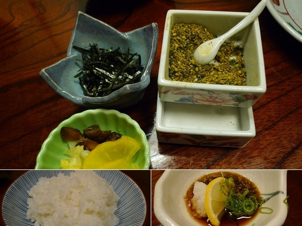 除了附有白飯和配菜之外,沾醬可依個人口味加山椒和鹽。