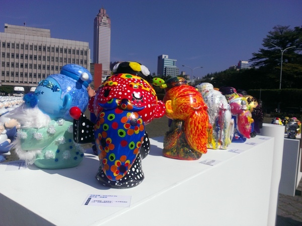 「228公園」南邊出口就是凱達格蘭大道,於是往總統府走去,廣場上好多可愛的公仔~~