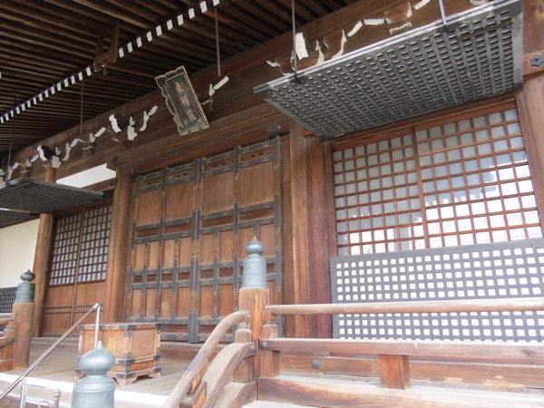 「本堂」原是「上賀茂神社」的「神宮寺觀音堂」,1869年遷移到此,黑色的遮陽擋雨窗設計很少見。