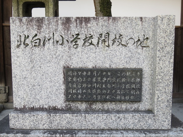 山門右邊立著「北白川小學開校地」石碑~1874年(明治7年)時借用此院的「毘沙門堂」開校授課。