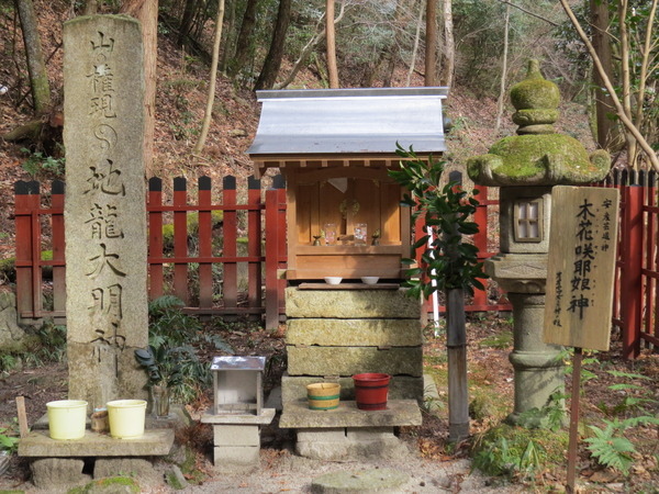 合祀山神「地龍大明神」,和掌管安產、藝術的美麗女神~「木花開耶姬」。