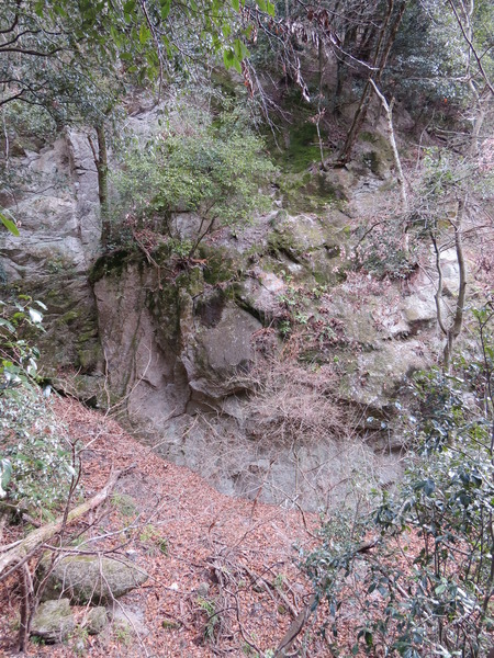 10:26 步道右側出現岩壁峽谷,猜測下方就是「白川源流」~「清沢口」,是「白川石」的產地之一~「清沢口石切場」,石材就地切割之後,運用獸力運送下山。