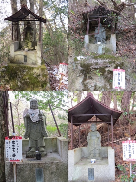 從「狸谷不動寺」到「瓜生山」山頂,山路階梯旁連續立著36尊童子像,是「狸谷不動寺 奧院」的參道。