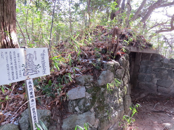 「東山59-3」木樁,旁邊小廟供奉祈求戰勝的「勝軍地藏」,是當時「平安京」東邊的守護神,現在改為「狸谷不動寺」的「奧院」,祭拜「幸龍大權現」。