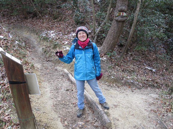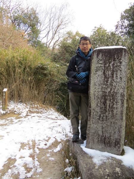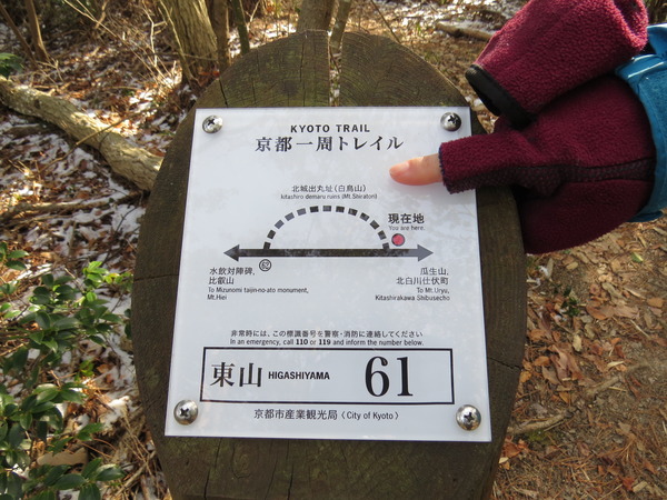 「東山69」木樁就在石碑旁~因為東山路線北邊的終點「叡電纜車」冬天停駛,所以原訂行程從這裡下山,到「叡電修學院」搭車回市區,但是實在捨不得今天的好天氣,所以決定轉彎上坡,繼續前進!