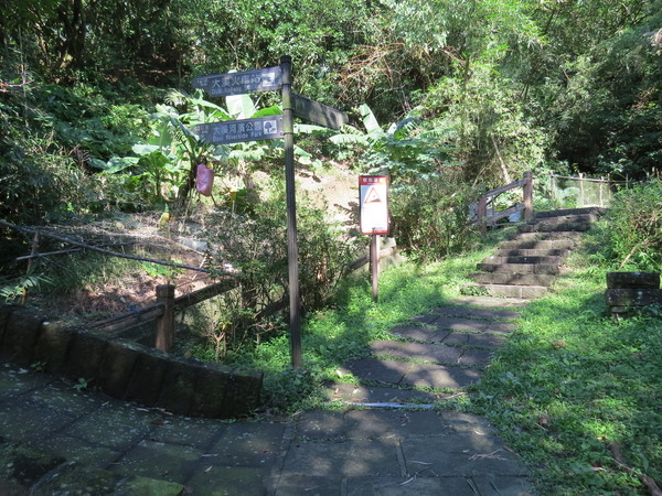 接著又到了新舊步道的岔路口,雖然不喜歡走階梯,很想走右邊看起來又寬又平的舊古道,但是舊古道不會經過