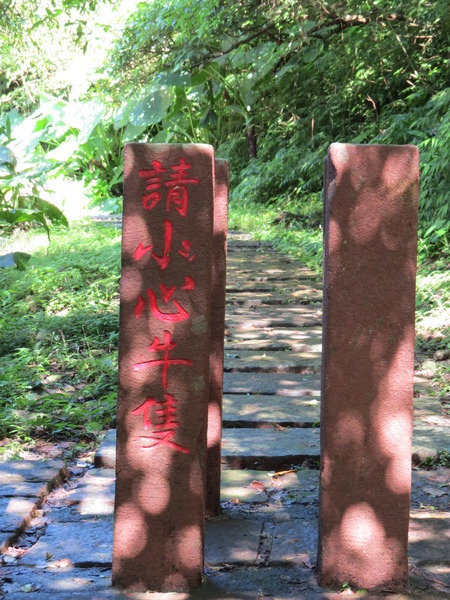 跟著「桃源谷」指標,進入石階步道,入口有「當心小黑蚊」警告牌。
