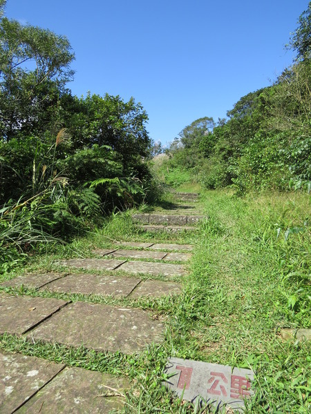 「桃源谷大溪線」步道起點(或終點),地上標示5公里,此後每0.5公里都有標示。