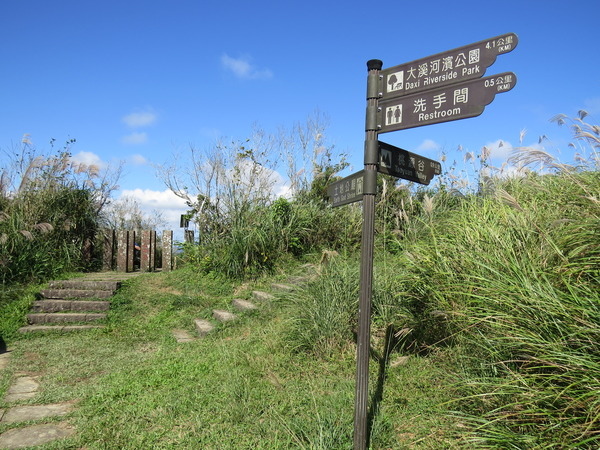 步道距離桃源谷1.6公里處,看見「廁所200m」,「大溪火車站」過後,終於有公廁了。