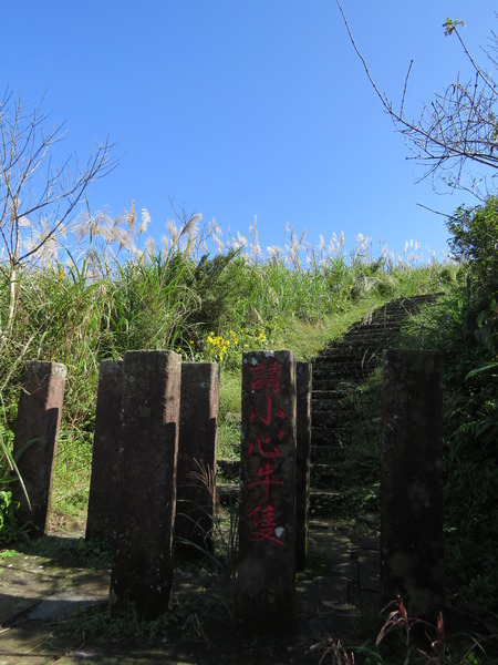 音為這一段稜線在東北季風吹送時風勢非常強勁,不利行走,於是除了「牛檔石」外,草原邊還用石頭堆起「風檔石」圍籬矮牆。