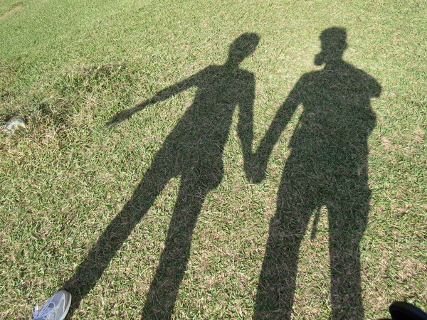 太陽正好在背後,出現兩人影子。