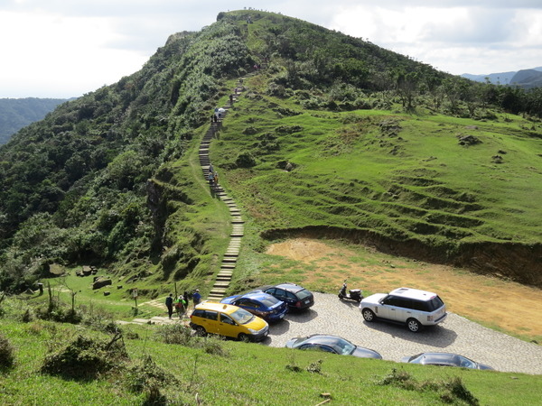 下了一段階梯出現停車場,難怪那對新人可以輕鬆來此拍婚紗~停車場是「草嶺線起點4.5K」。