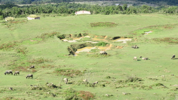 山谷邊的水窪周圍赫然見成群的牛隻~終於見到牛了!