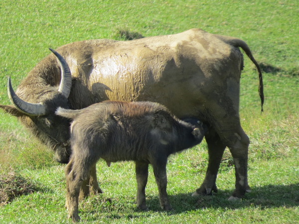 小牛喝奶,母牛舐犢,好一幅溫馨的天倫之樂!