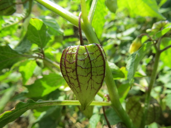 姊夫和融融在花田中發現很像燈籠的果實(像葡萄那麼大)~「苦蘵(ㄓˊ)」,成熟果實可食哦!