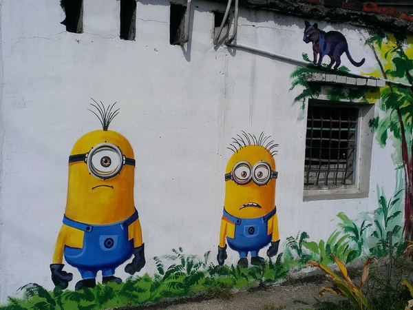 第二區:彩繪二巷(GPS 設定「海山路一段二巷」,車子借停住家前,沿著馬路曬太陽)