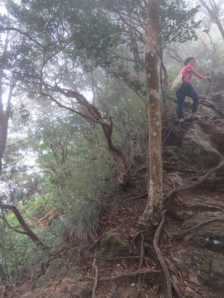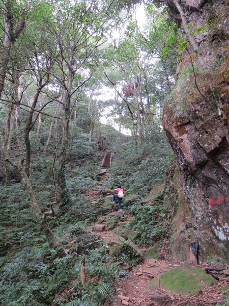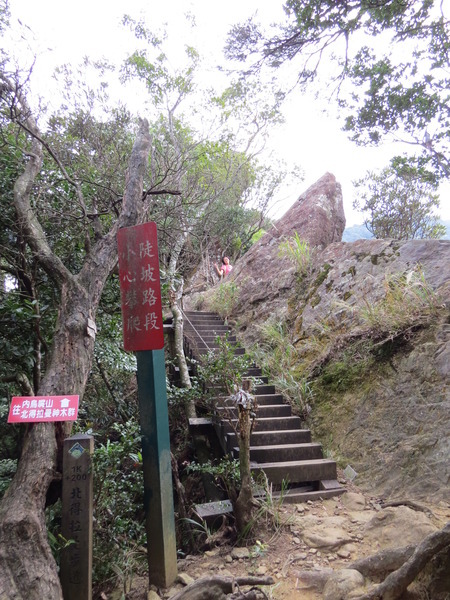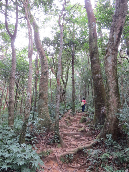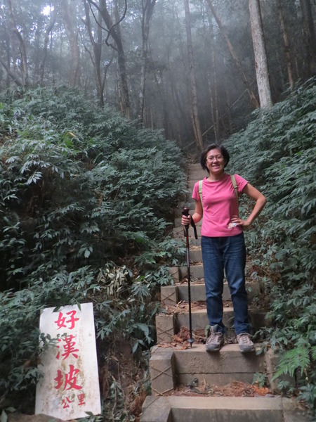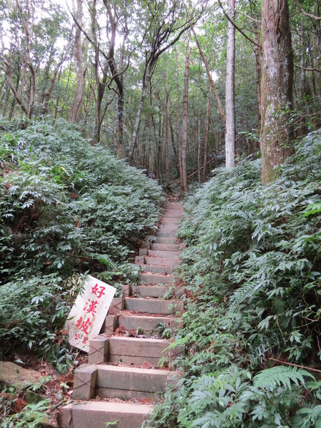 9:45 步道0.6K處,「好漢坡」起點。其實往上都是這種坡度,這裡何必特別取這個名字呢?看到有網友戲稱是流很多汗的「好汗坡」,因為走到這裡已經開始飆汗了,哈!
