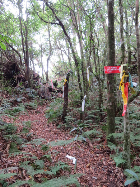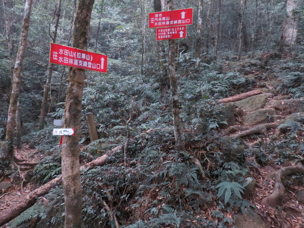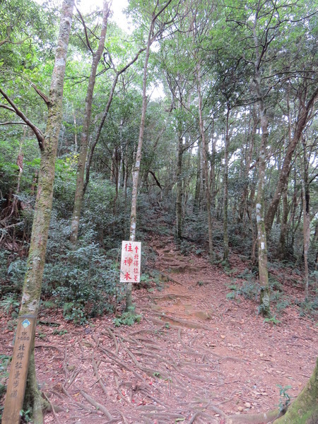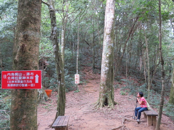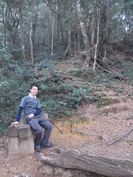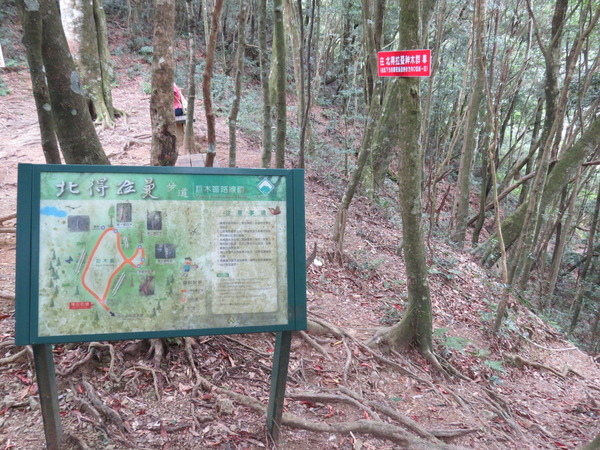 回到步道2.2K木樁處,一路上坡回到「巨木區岔路#1」旁休息,這一段也可以叫做「好汗坡」。(14:25)