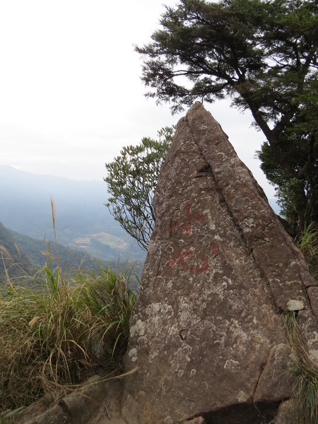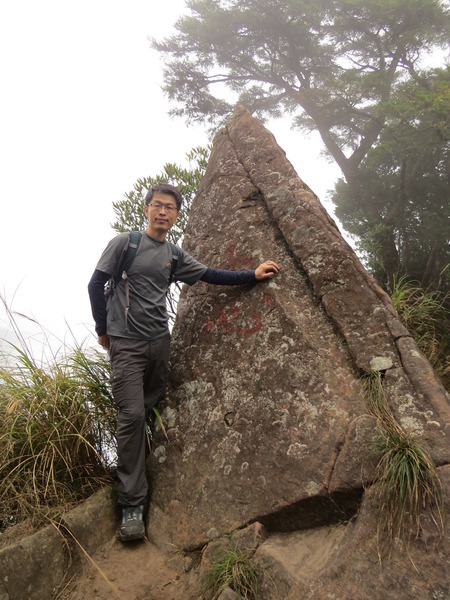 三角點附近擠滿了朝聖山毛櫸的登山客,我們躲到後方展望處欣賞濃霧,休息享用午餐~7-11握便當+烏龍茶。