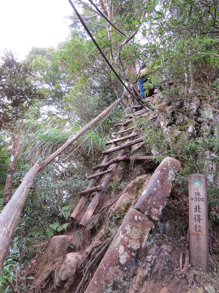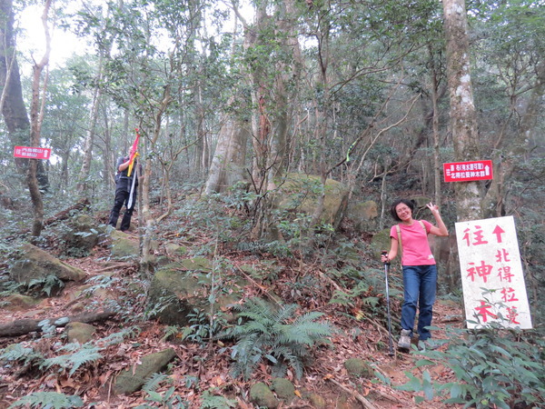 13:26 「北得拉曼步道1.7K」,「巨木區」木樁起自1K+600,終於2K+500,1公里距離,我們走了1小時,挺累的。