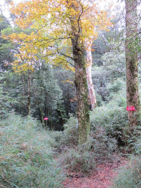 前方一棵變色的樹,是「台灣山毛櫸」嗎?樹型不像。