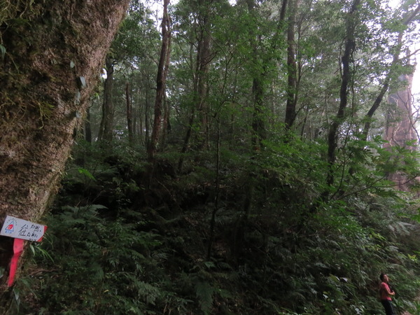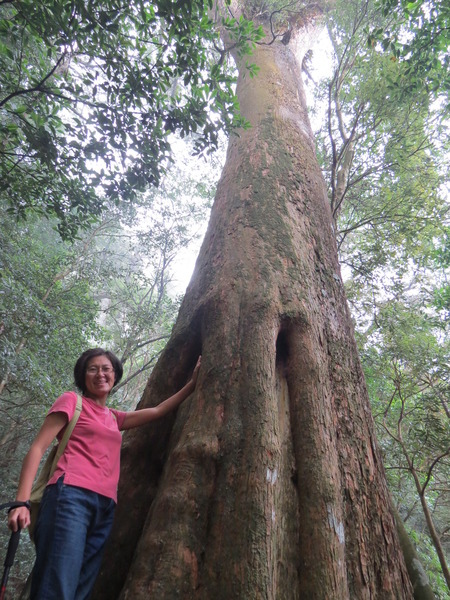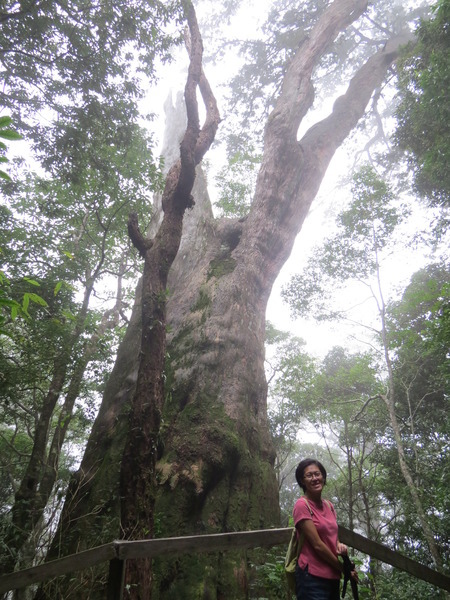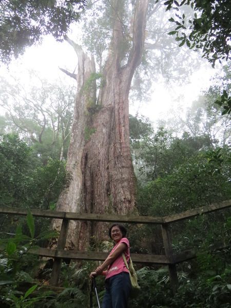 步道陰暗潮濕,下午2點不到,卻像傍晚5點多了;而且一路下坡,想到待會兒又要上坡就腳軟,等一下的「巨木」最好値得一瞧!