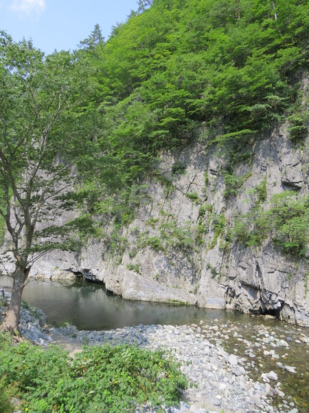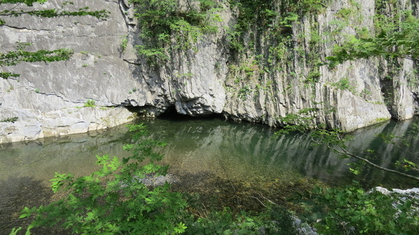河川長年沖刷,侵蝕出這一段石灰岩絕壁溪谷。