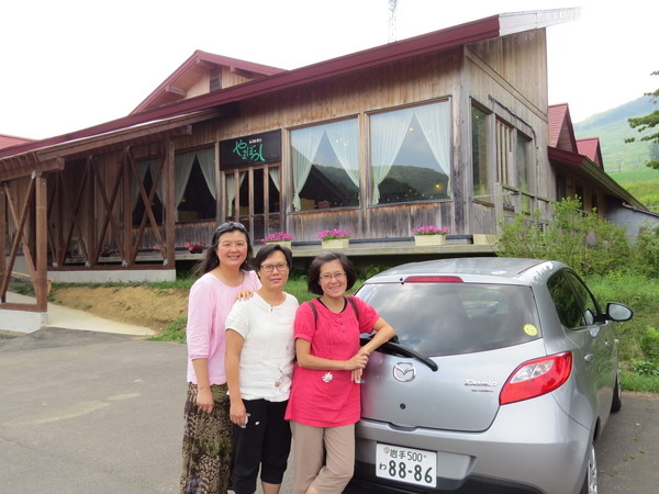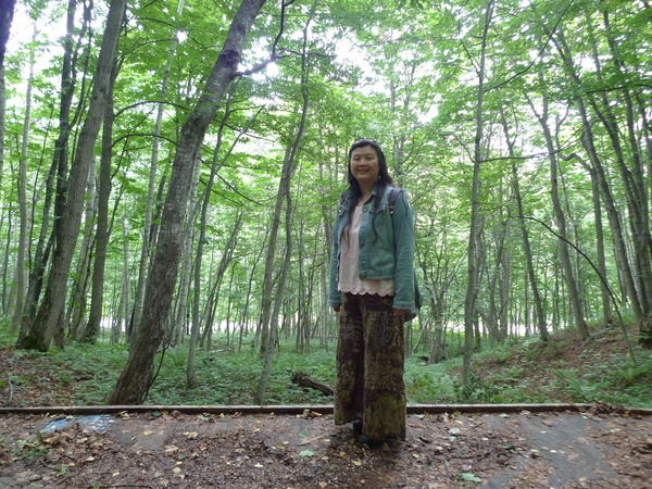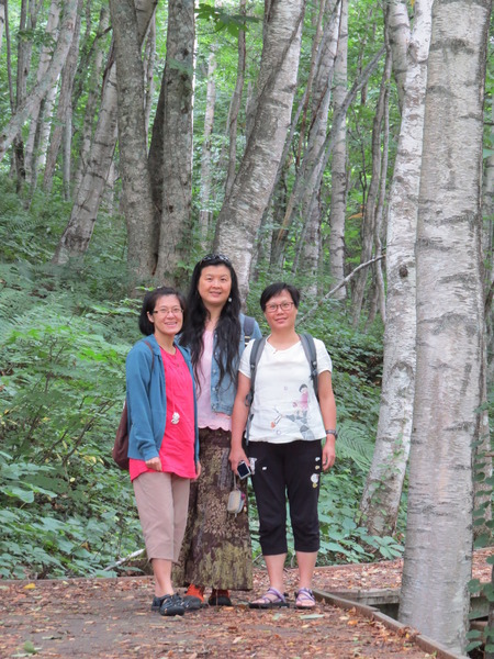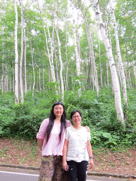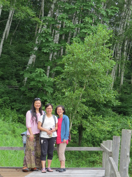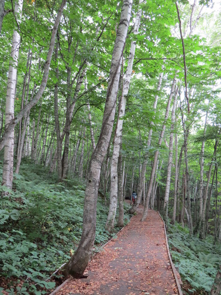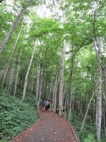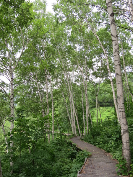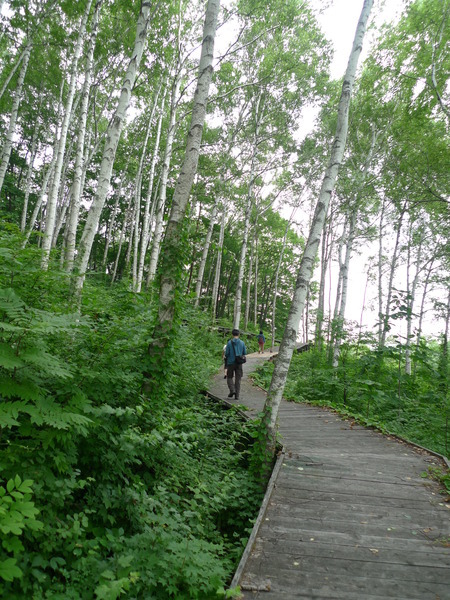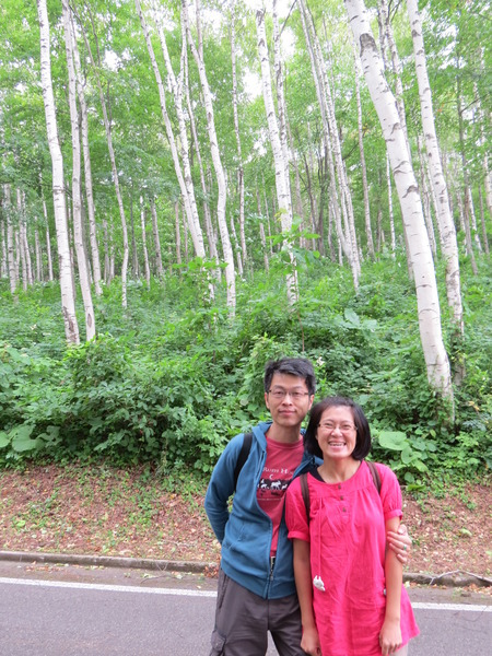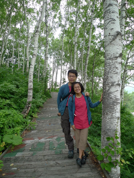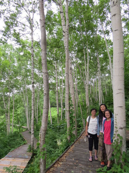 我們沿著「國道281號」西行,不知道「最大的白樺林」在哪裡,因為沒有電話號碼可以輸入,皇上在「平庭峠」十字路口看到這條環狀的「無障礙步道」,大家下車散散步。