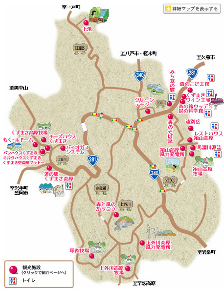 岩手縣北邊的 「葛卷町」原來是「什麼都沒有之町」,新幹線、高速公路、溫泉、遊樂區、高球場、名人都沒有,只有酪農和林業。後來利用「牛的糞尿」與「木屑」作為「生物發電能源」,加上町方出資興建「風力發電廠」,成為有名的「北緯40度牛奶、美酒與綠能之町」,每年吸引50萬訪客,其中30萬人是「綠能見學團」,曾經多至一年300團。