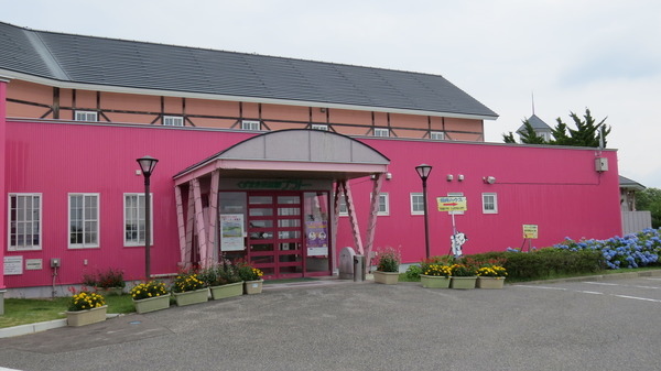 停車場周圍有幾間賣店,這間粉紅色的「交流館」最醒目。(有提供宿泊)