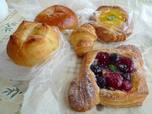 現在才早上十點鐘,早餐吃得很飽,一點也不餓,但是這裡的麵包得過獎,而且一盤一盤出爐的麵包陸續端出來,忍不住就夾了這麼多個。