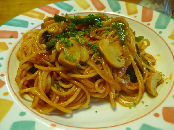 番茄醬調味加入簡單食材的義大利麵,二次大戰後(1955年)貧窮的日本庶民改良西餐而來。我們覺得番茄醬的味道不優,與前面幾道比起來,不太想吃這一道,但是仍然份量很多,誠意十足。