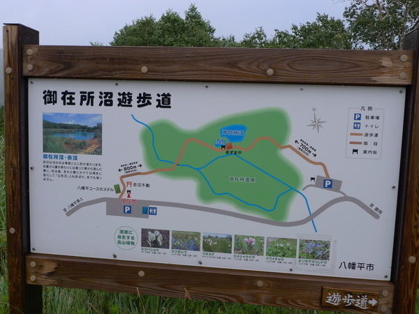 停車~看似荒廢的「八幡平Youth Hostel」旁,開始走「御在所沼、赤沼遊步道」,單程800公尺,原路來回,方便取車。