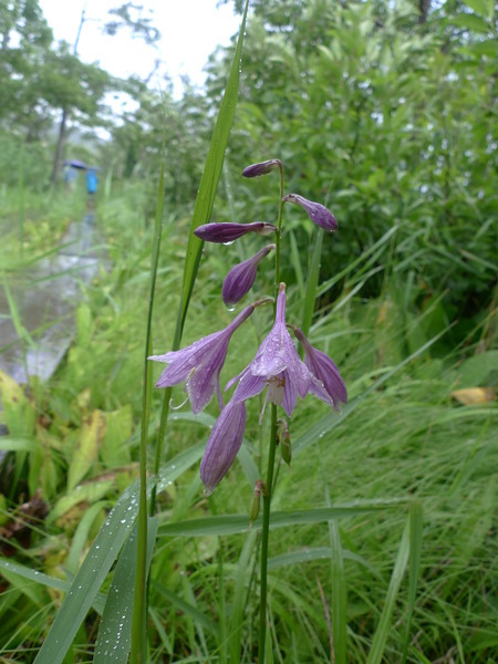 路旁好多漂亮小花(タチギボウシ,花期八月初~九月底),但是下雨不方便照相,僅以此花為代表。