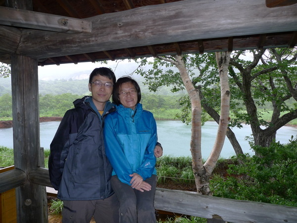 繼續上路,車子越爬越高,雲霧越來越濃,窗外風雨越來越大,來到「八幡平三大展望台之一」的「源太岩展望台」,看得出我們身在雲霧中,山下其實仍是晴天,時晴時雨的天氣,實在讓人無法捉摸。