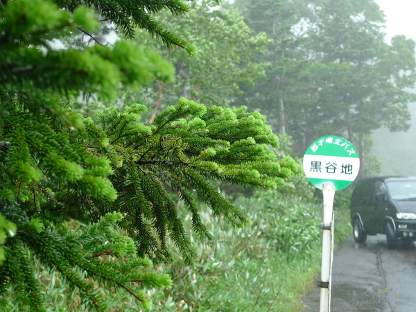 經過「茶臼岳登山口」、「熊沼」都因雨勢太大而過站不停。途中見到一隻瘦巴巴的「流浪狗」,濕漉漉地在馬路上徘徊,好可憐,仔細一瞧,才知是「紅狐」。