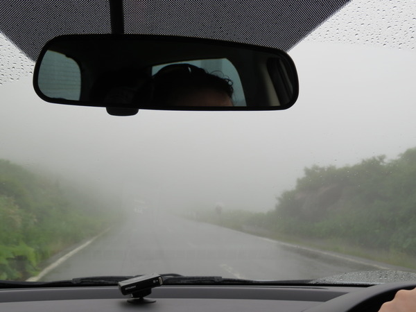 但是我們身在異鄉,路線不熟,語言不通,安全最重要;雨霧中行駛並不安全,而且車外風雨交加,天候、視線都不佳,就算冒險到達了目的地,也不一定就能如願看到風景,因此大家決定原路下山,吃午餐去。