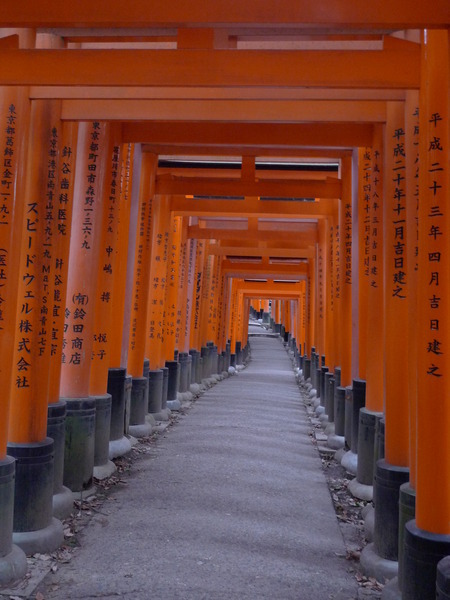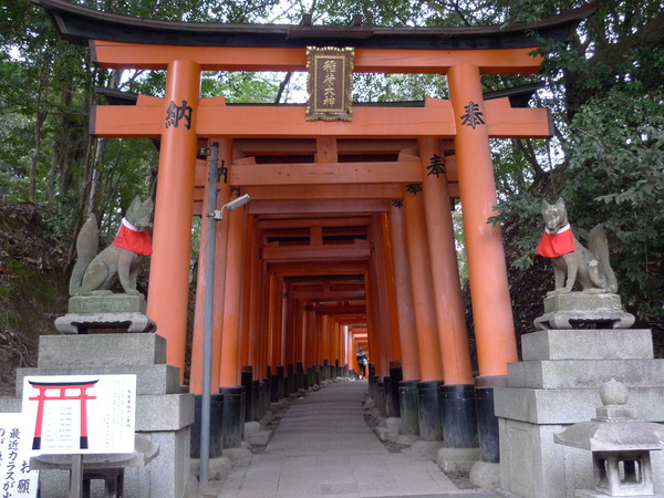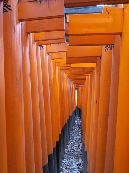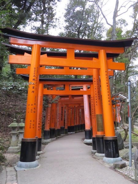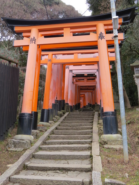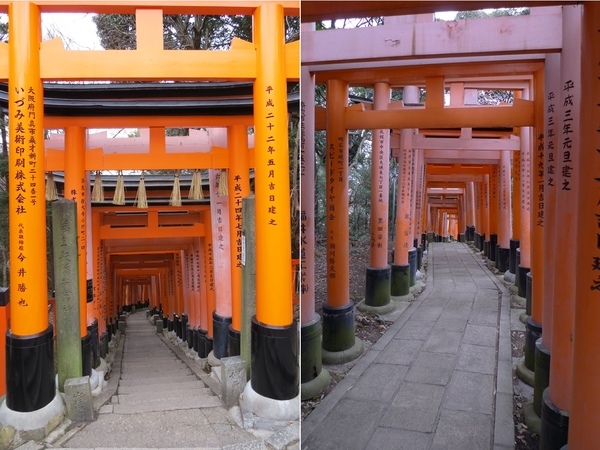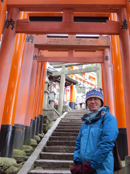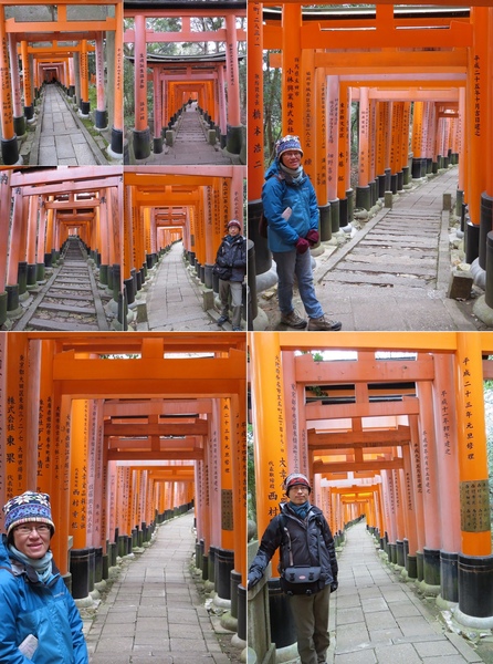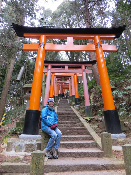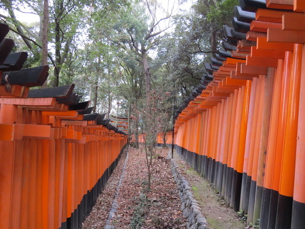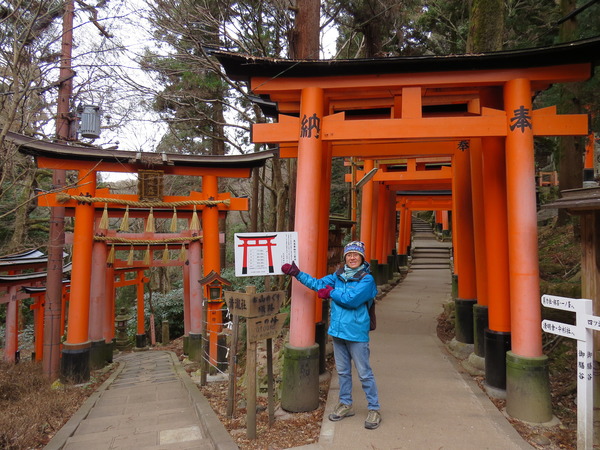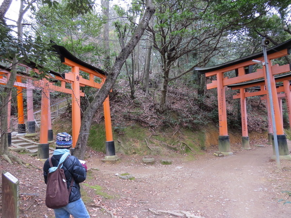 13:24 「伏見稻荷大社後門」~稻荷山「御幸奉拜所」附近,「伏見稻荷大社」綿延的「紅色鳥居」出現,只是顏色比傳說中黯淡許多,怎回事呢?原來這是後門,要看新的、漂亮的請走正門!