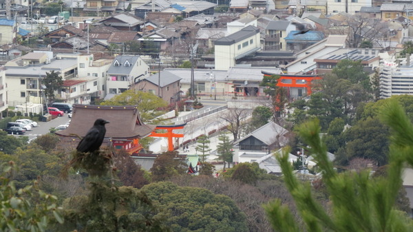 可以望見「伏見稻荷大社」的「參道口」、「大鳥居」和「樓門」。