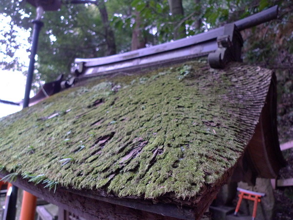 看完「劍石」下樓梯時,看見一層一層檜木皮疊成的「檜皮葺屋根」,第一次這麼近距離看到,細緻又漂亮。