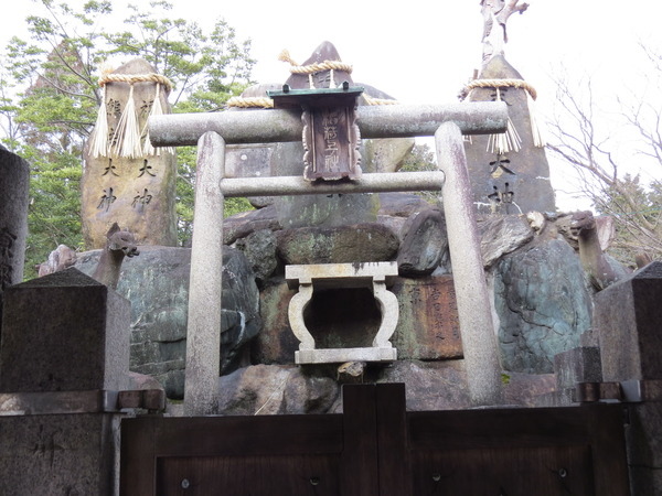 後面有一些古老的「塚」,上面寫了很多神的名稱,中間寫著「稻荷上社」,這幾個神蹟地附近都會有「塚」。