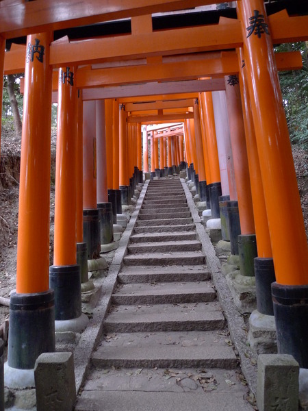 繼續下山~越接近山下,鳥居隧道就越密集。